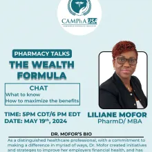 You are invited to a Zoom webinar.  When: May 21, 2023 05:00 PM Central Time (US and Canada)  Topic: CAMPhA- USA Pharmacy Talks  Register in advance for this webinar: https://us02web.zoom.us/webinar/register/WN_Q7KtEXbQQHmbMGGDAELPKA   After registering, you will receive a confirmation email containing information about joining the webinar.